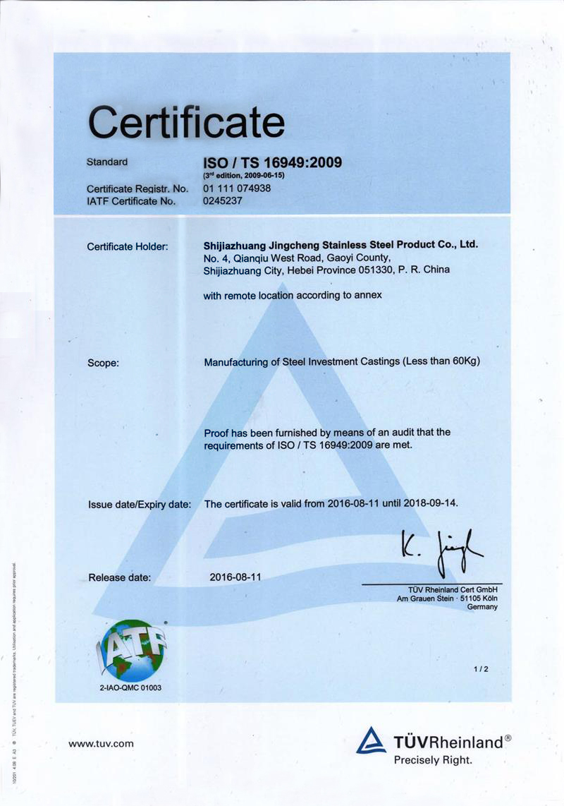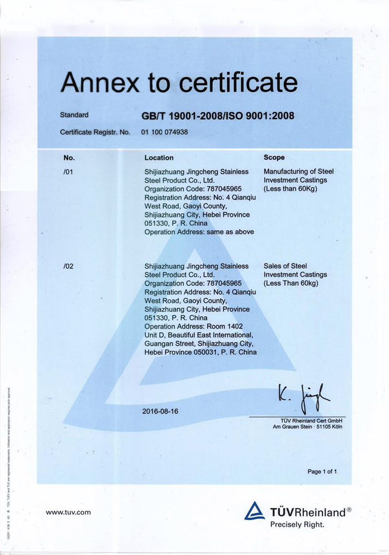 石家莊市精誠不銹鋼制品有限公司,是一家從事專業精密鑄造的企業。主要生產不銹鋼、合金鋼、低碳鋼及各種特種合金材質的精密鑄件及加工產品。